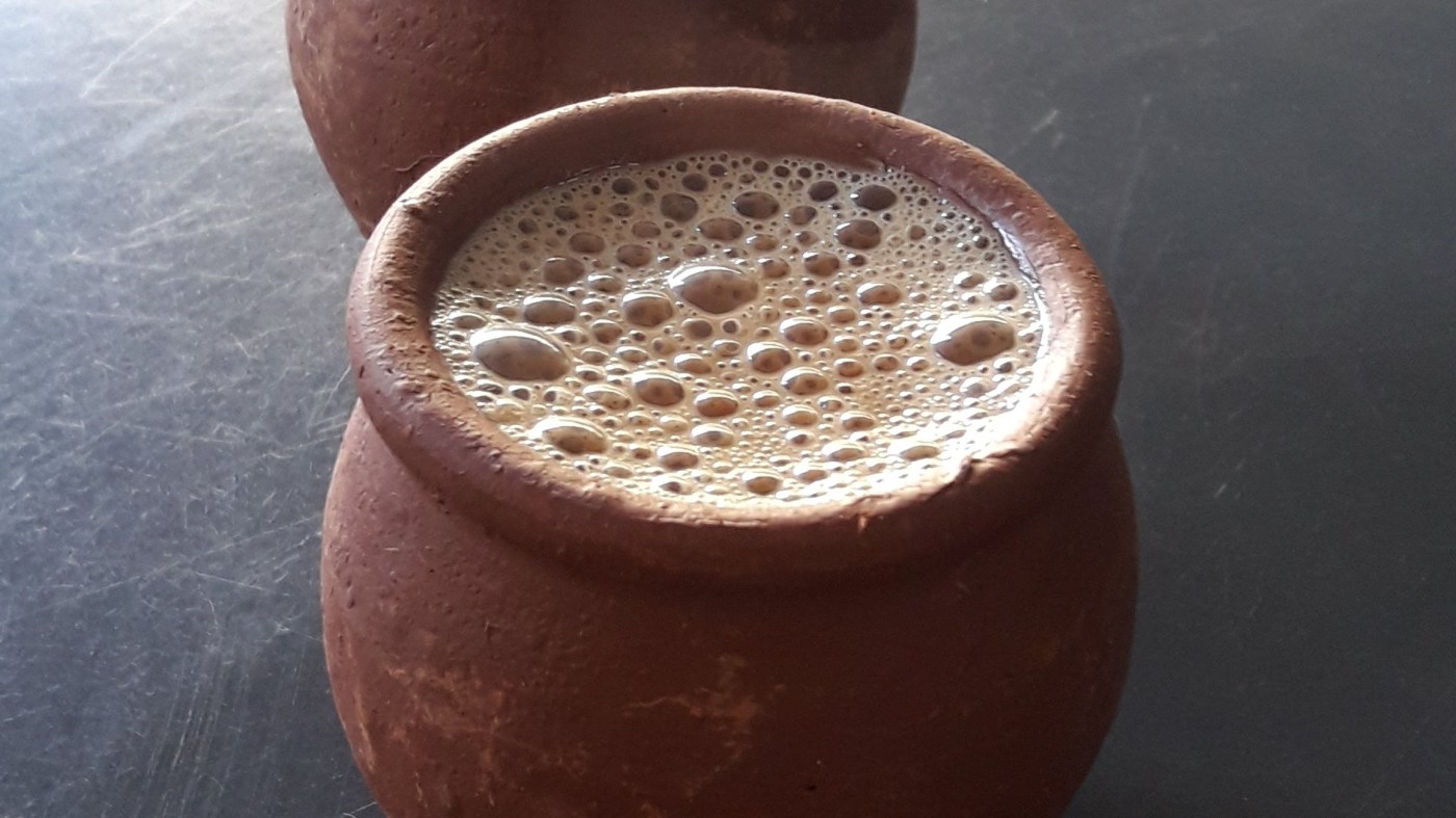 The team is served in clay cups which are discarded after being used once. The clay certainly has an impact on the taste, and the texture when your lips touch the cup.