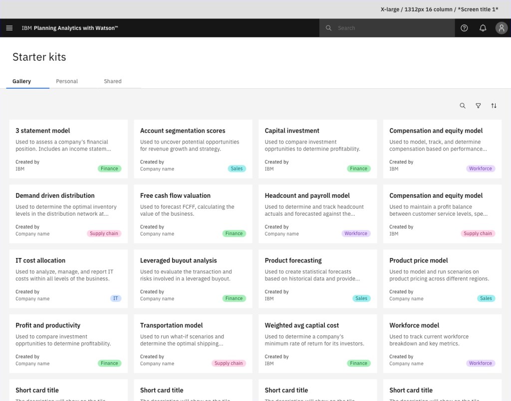 In Planning Analytics and Cognos Analytics we made it easier for novice users to get started by designing a common home screen, where getting started information is displayed across the top and then actions are provided to create the most important assets in the product.