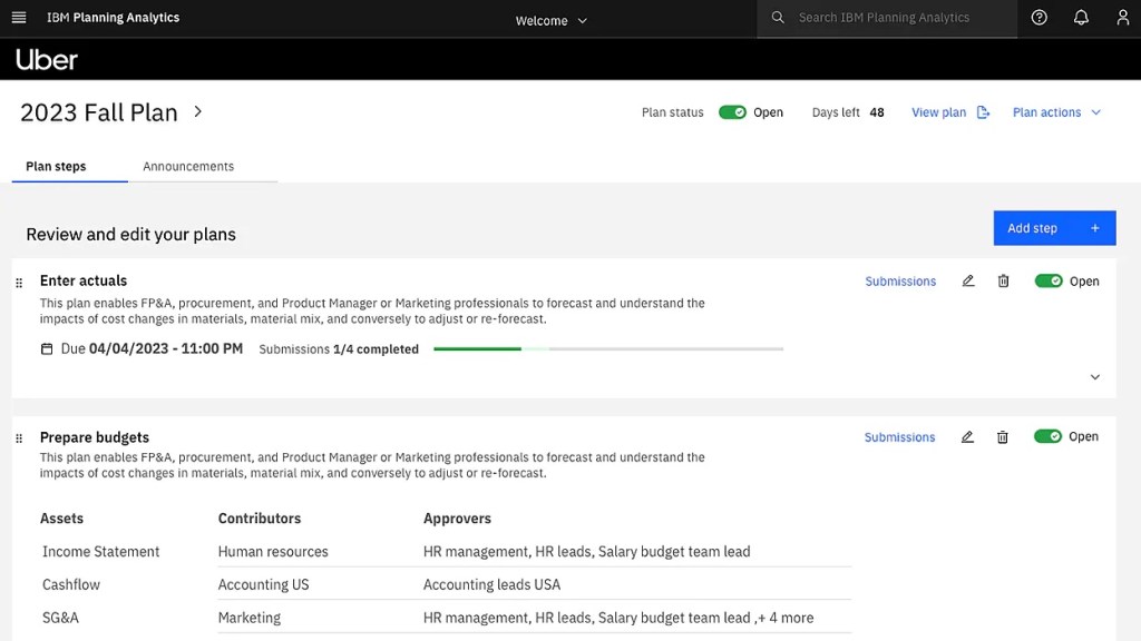 This feature filled a huge gap in Planning Analytics, and makes it easier than ever to create a top down or bottom up plan across your organization. In the snapshot below, you can see how the steps in the plan are defined.